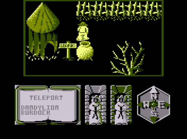 En la parte superior de la pantalla se encuentra la vista de la parte del pueblo donde se encuentra Learic. Las pequeñas flores que crecen en los caminos son las hierbas y los objetos necesarios para preparar las Pociones Mágicas. Para entrar en posesión de las hierbas, debes acercarte a ellas por debajo, y el mago se agachará y las recogerá. Entonces, el Libro de Hechizos, ubicado en la parte inferior izquierda de la pantalla, se abrirá en la página correspondiente, y el nombre de la cosa o hierba encontrada cambiará de color a rojo. El Libro de Hechizos es un listado de todos los conjuros. Para revisarlo, debes presionar botón y mover el joystick hacia la izquierda y la derecha; de esta manera, pasaremos las páginas del libro. En cada página se encuentra el nombre del hechizo y los nombres de las hierbas o objetos necesarios para preparar la poción que permite usar ese conjuro. Junto al Libro de Hechizos hay dos sarcófagos que simbolizan las fuerzas vitales de ambos hermanos. Si la figura de Learic o Leanoric abandona el sarcófago, significará la muerte para él. La esquina inferior derecha de la pantalla es la "brújula" que muestra la dirección, o más bien la parte del pueblo en la que se encuentra actualmente nuestro gran enemigo Leanoric.