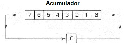 Las instrucciones ROL (rotar a la izquierda) y ROR (rotar a la derecha) también se utilizan para desplazar bits en números binarios. Pero no utilizan uso del bit de acarreo. En su lugar, trabajan de esta manera: